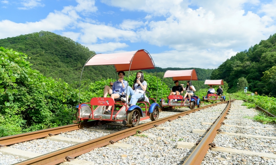옛 철길을 따라 북한강을 배경으로 달리는 강촌 레일바이크는 남녀노소 모두가 좋아하는 대표 체험 여행지예요. 철길 옆 풍경이 계절마다 바뀌어 언제 가도 색다릅니다.